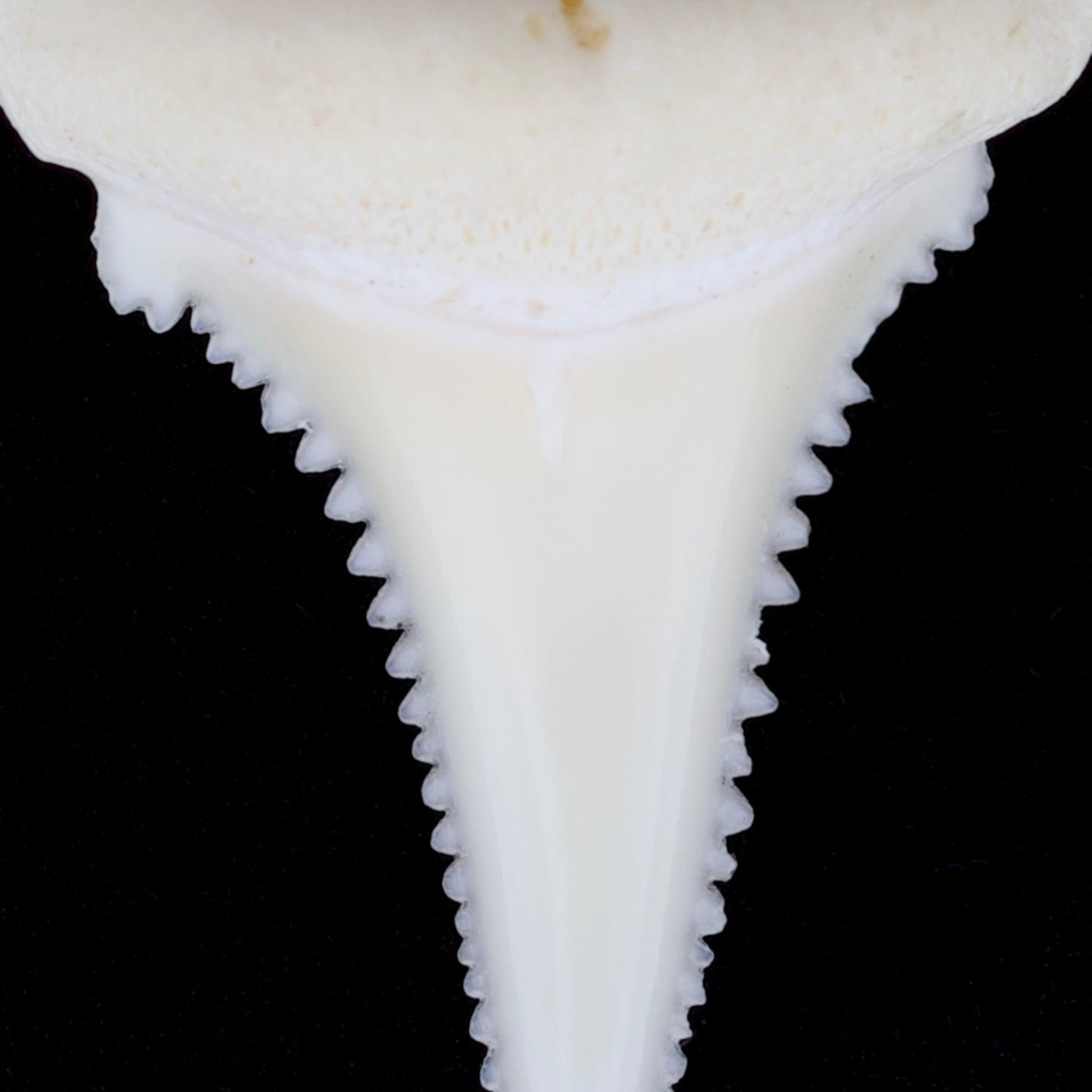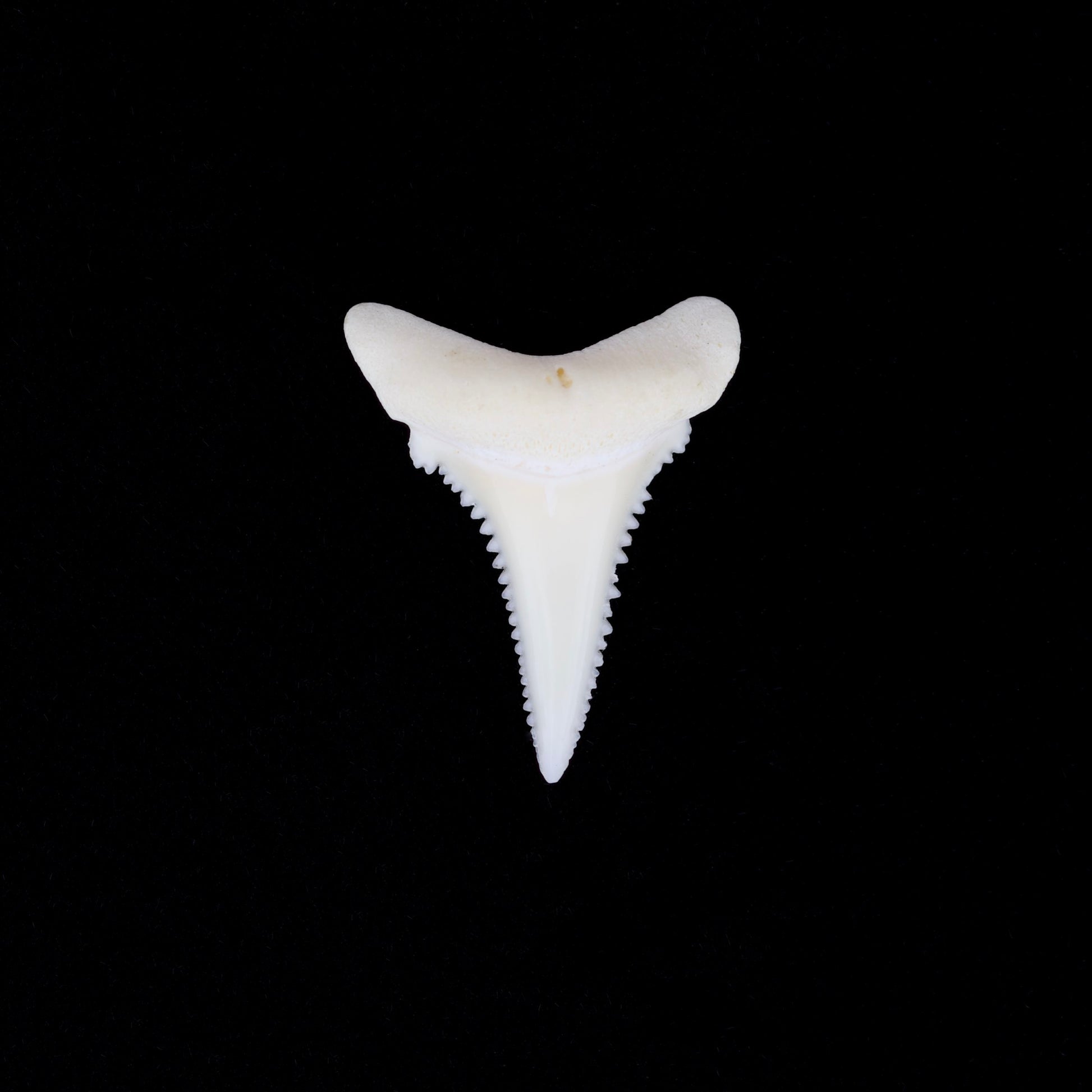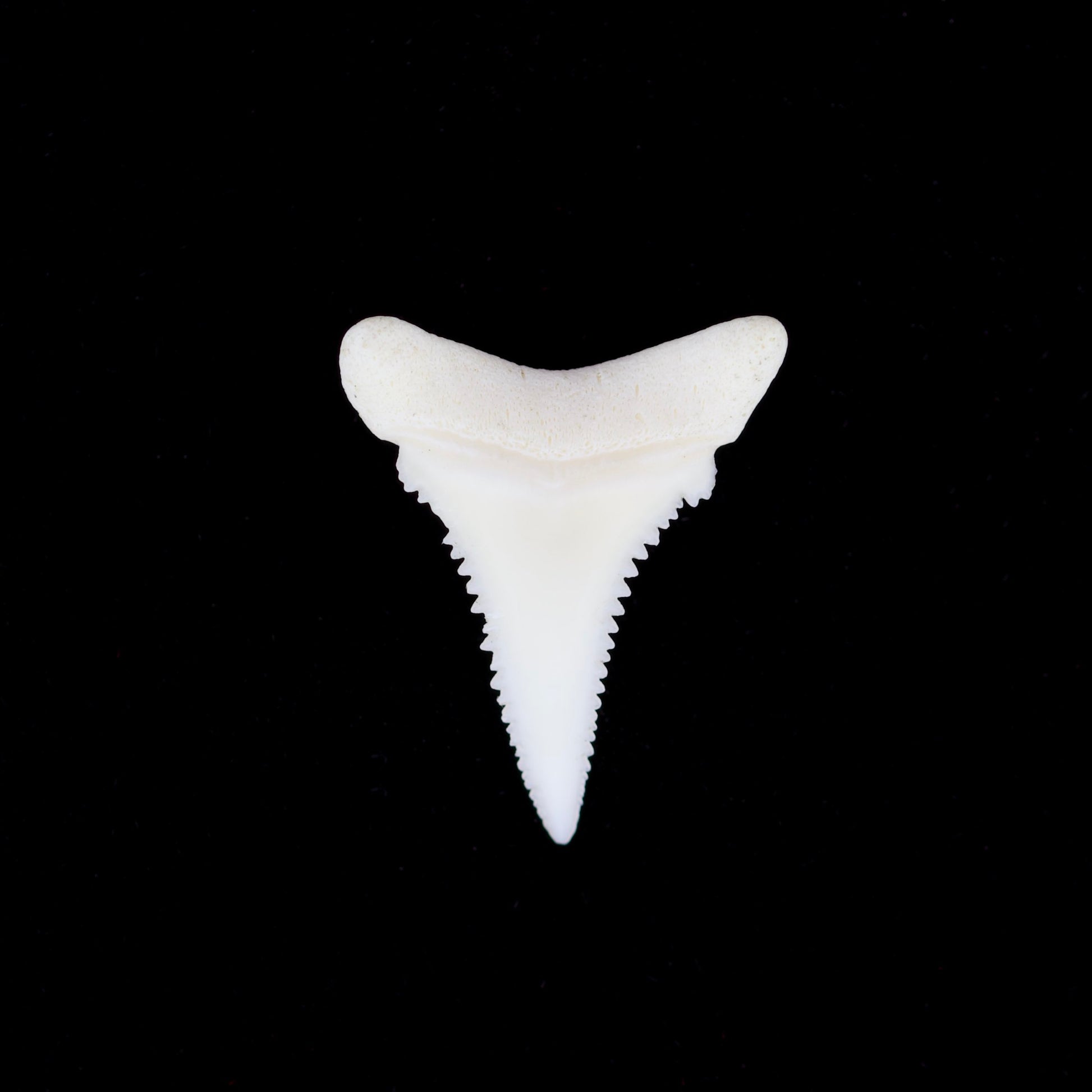 This 0.8-inch modern Great White Shark tooth (Carcharodon carcharias) is a natural specimen, sourced responsibly from a private collection assembled over thirty years ago. Its sharp serrations, classic triangular shape, and distinctive enamel sheen make it a striking example of the species.