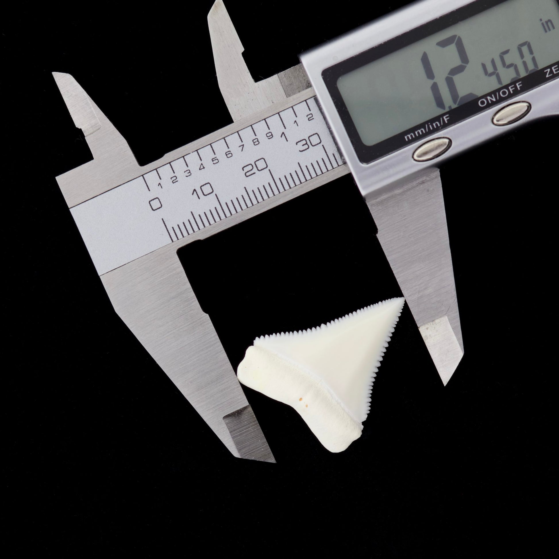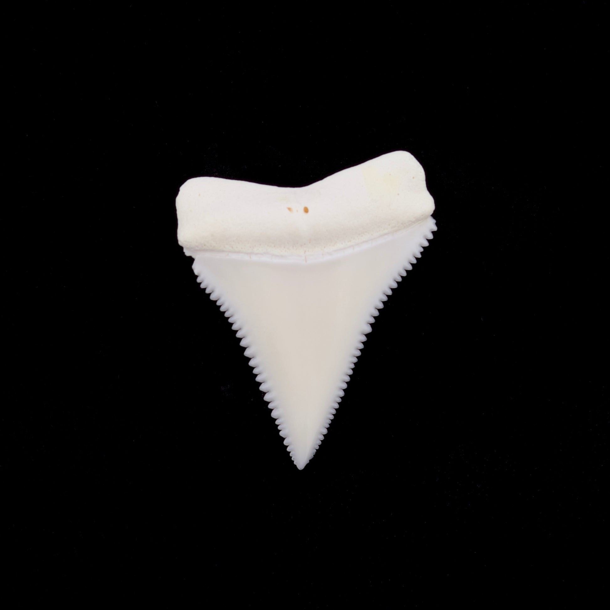 Own a genuine piece of one of the ocean’s most iconic predators. This 1.24-inch modern Great White Shark tooth (Carcharodon carcharias) is a natural specimen, sourced responsibly from a private collection assembled over thirty years ago. Its sharp serrations, classic triangular shape, and distinctive enamel sheen make it a striking example of the species.