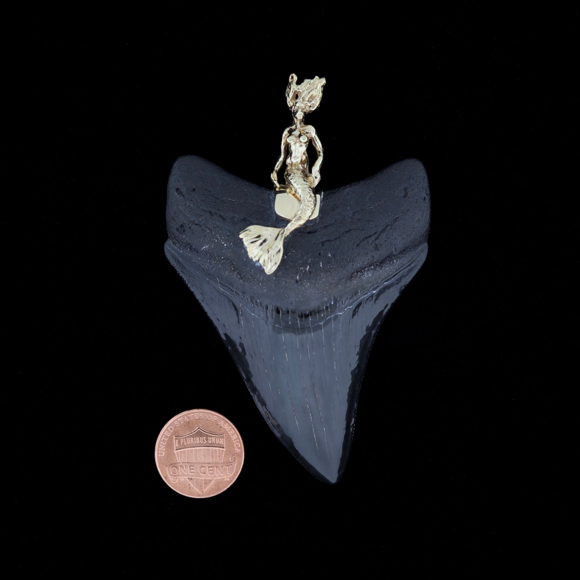3" Megalodon Tooth Pendant | 14k Gold Mermaid