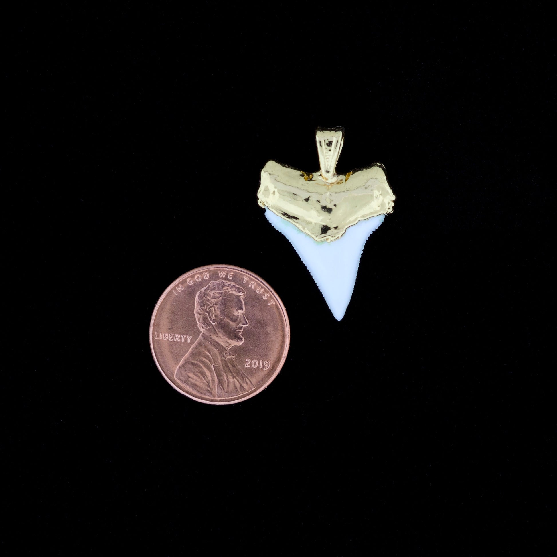 7/8" Oceanic White Tip Shark Tooth Pendant - 18K Gold Electroformed