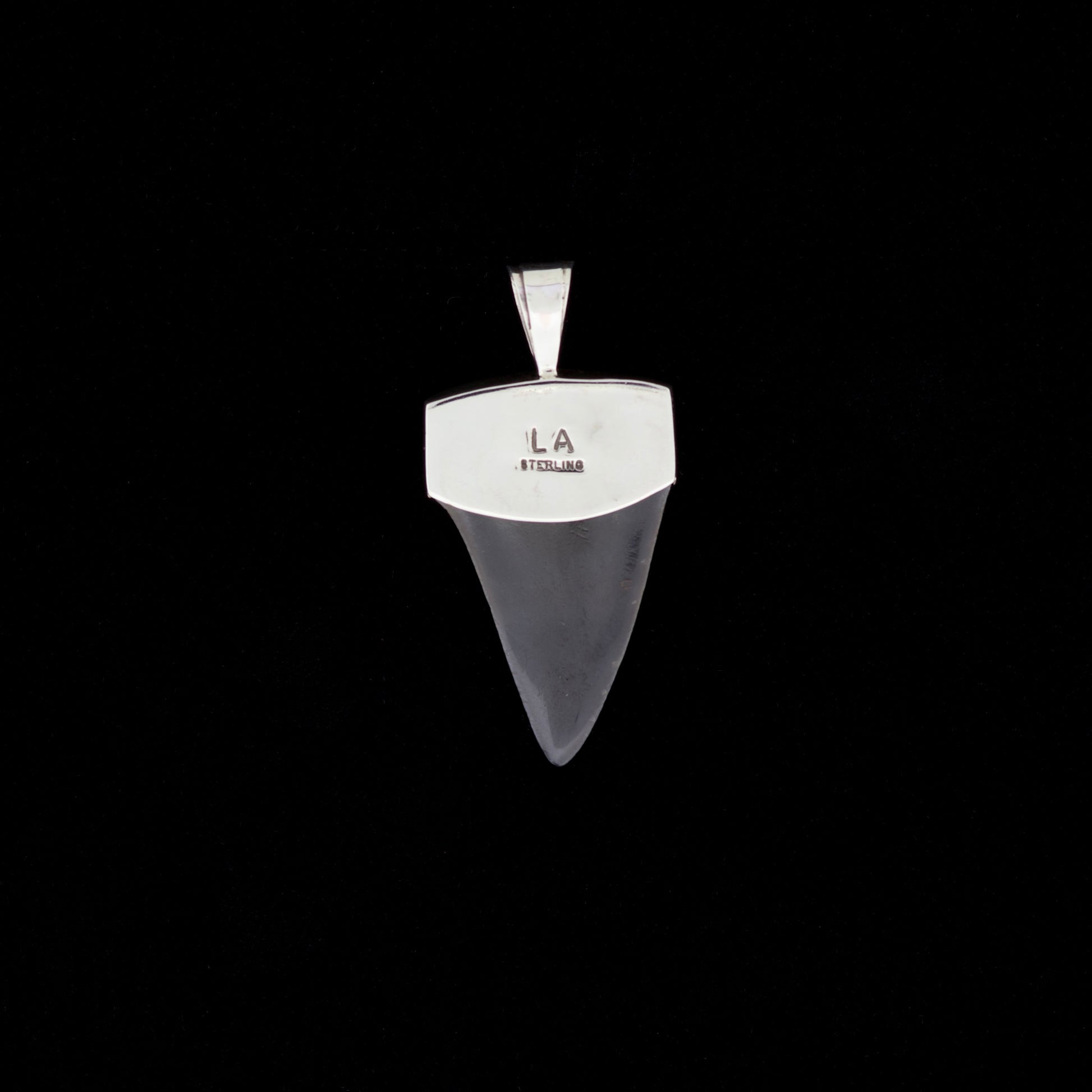 Please Note: Each fossil mako shark tooth is a unique geological specimen. Natural variations in preservation, mineralization, and coloration authenticate its ancient origin. The sterling silver cap with turquoise and onyx inlay is handcrafted, ensuring each piece carries individual character.